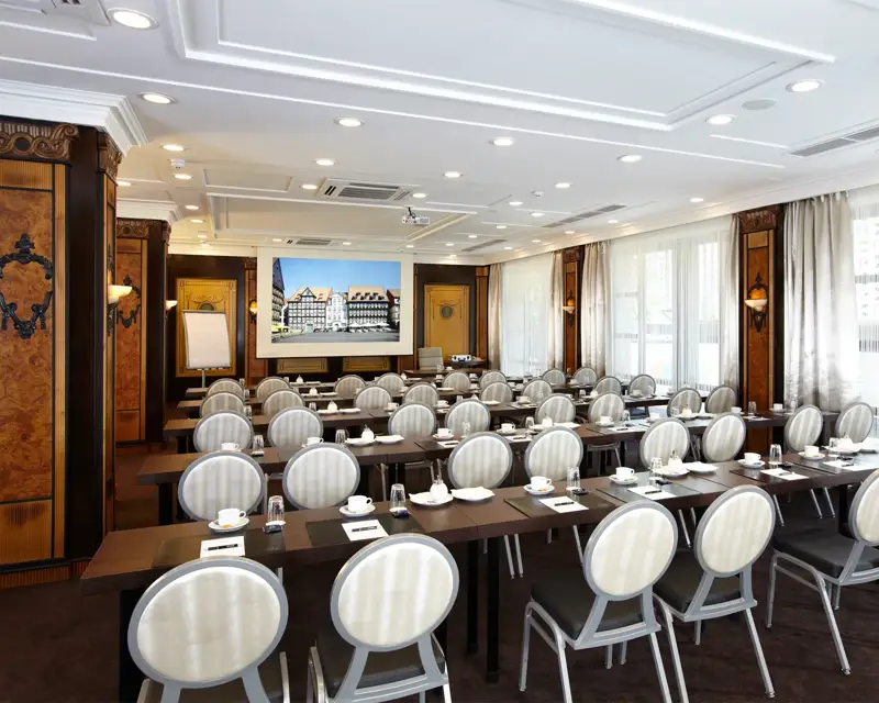 Wollenweber Room I exudes a warm, inviting atmosphere, where tradition rises to a high level. Whether set up for a conference or for a festive event, it offers the suitable setting for any occasion. Daylight floods the room through the window front. The room can be separated from Wollenweber Room II with a soundproof partition.