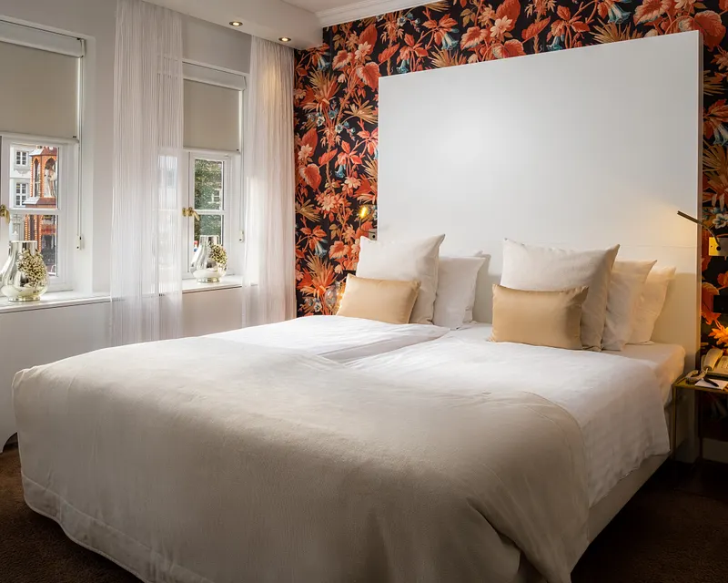 Die Executive Zimmer verfügen über ein Kingbett mit einer Matratze von 1,80 x 2,00 oder 2,10 m Größe. Drei der sechs ca. 34 qm großen Zimmer lassen mit großen Fensterfronten zum historischen Marktplatz einmalige Ausblicke zu. Drei Zimmer sind ruhiger gelegen mit Blick zum Eingangsbereich. Die Zimmer zeichnen sich durch eine unterschiedliche Farbgebung aus, sind individuell und modern designed. Die Badezimmer sind mit einer Regendusche und getrennter Badewanne ausgestattet.